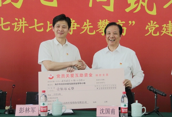 向海寧黨員關愛互助資金捐贈100萬