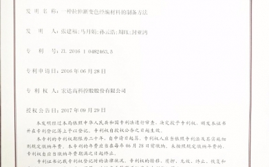 2017年10月,宏達(dá)高科控股股份有限公司收到中華人民共和國國家知識產(chǎn)權(quán)..
