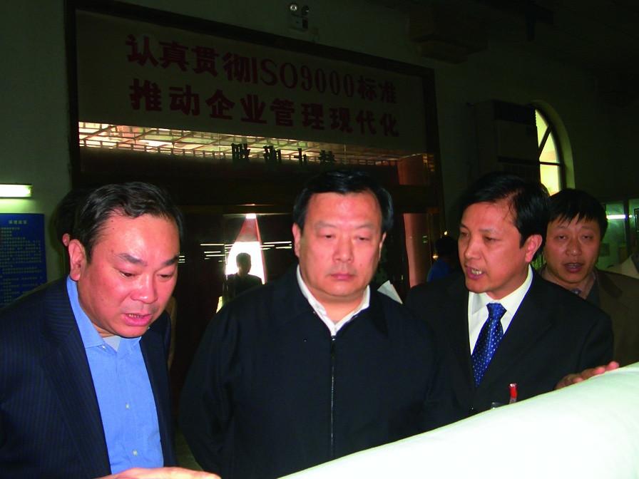 中共吉林省委書記(時任浙江省副省長)巴音朝魯在宏達(dá)經(jīng)編股份有限公司測試中心考察