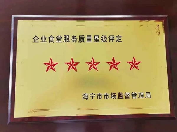 2021年7月,宏達高科食堂獲海寧市市場監督管理局頒發的2020年度企業食堂服務質量五星級評定。