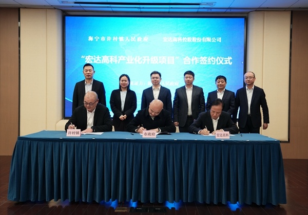 近日,海寧市許村鎮(zhèn)人民政府和宏達(dá)高科控股股份有限公司在許村鎮(zhèn)舉行“宏達(dá)高科產(chǎn)業(yè)化升級項(xiàng)目”合作簽約儀式,海寧市委書記徐明良、市長許紅蓮、市委副書記呂忠飛等市領(lǐng)導(dǎo)參加并見證簽約,許村鎮(zhèn)黨委書記許新峰、鎮(zhèn)長朱永斌,宏達(dá)高科董事長沈國甫、副董事長沈珺出席儀式。