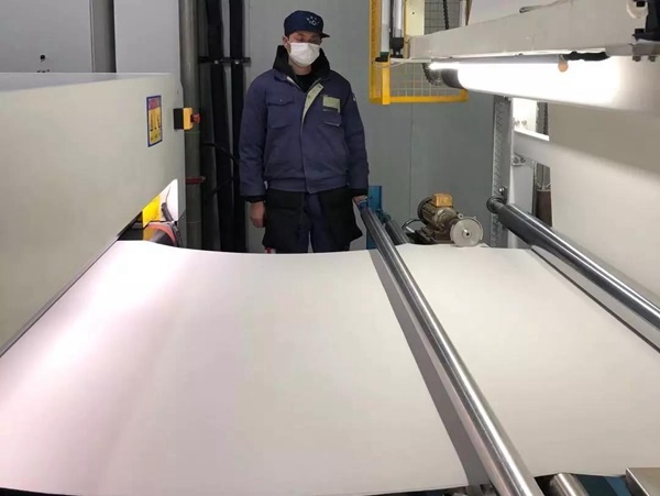 復工當天,車間內(nèi),只見員工們戴著口罩在生產(chǎn)線上忙碌。由于生產(chǎn)設備高度自動化,一名員工可以看管5至6臺設備,因此車間內(nèi)人員并不密集,生產(chǎn)也是井然有序。正在生產(chǎn)的這批汽車頂蓬面料,后天將發(fā)給客戶,以滿足客戶的需求。公司副總經(jīng)理孫云浩表示,公司目前已開啟織造和復合兩條生產(chǎn)線,等集中供熱啟動后,公司染整生產(chǎn)線也將恢復生產(chǎn);后續(xù)將根據(jù)產(chǎn)業(yè)鏈上游的供應情況和下游的客戶需求情況逐步提升產(chǎn)能,爭取在15日全部恢復生產(chǎn)。