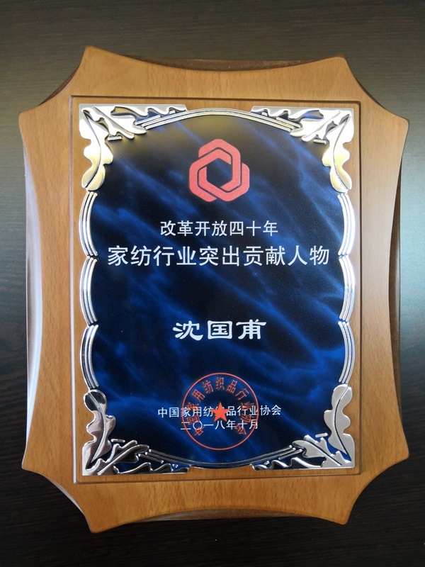 沈國(guó)甫董事長(zhǎng)為地區(qū)乃至中國(guó)家紡行業(yè)的發(fā)展做出了不懈的努力,曾獲得過(guò)“全國(guó)紡織優(yōu)秀思想政治工作者”、“全國(guó)紡織工業(yè)勞動(dòng)模范”、“中國(guó)紡織品牌文化建設(shè)杰出人物”等多項(xiàng)榮譽(yù)稱號(hào)。