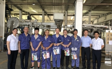 近來連日高溫達(dá)37℃以上,宏達(dá)高科總經(jīng)理許建舟等公司領(lǐng)導(dǎo)一行來到生產(chǎn)車間..